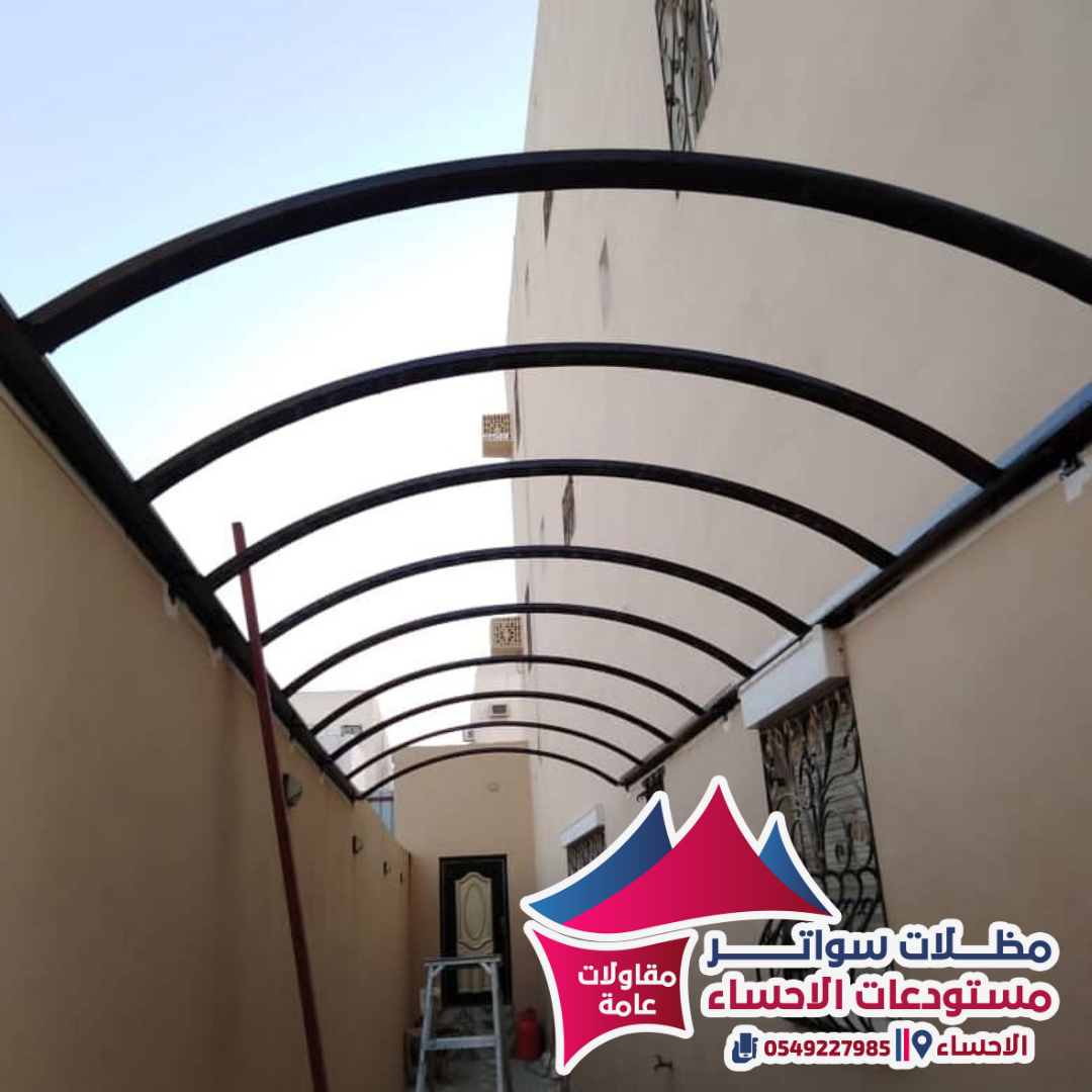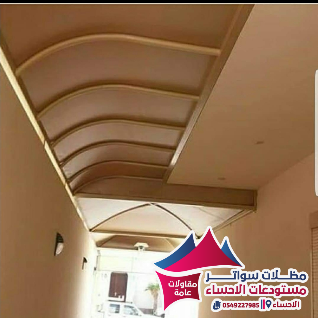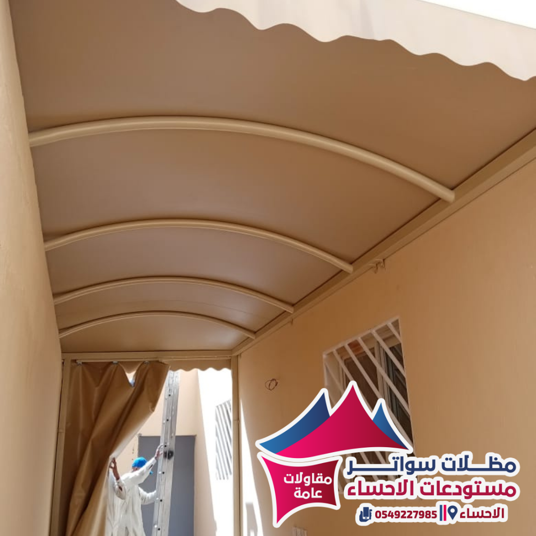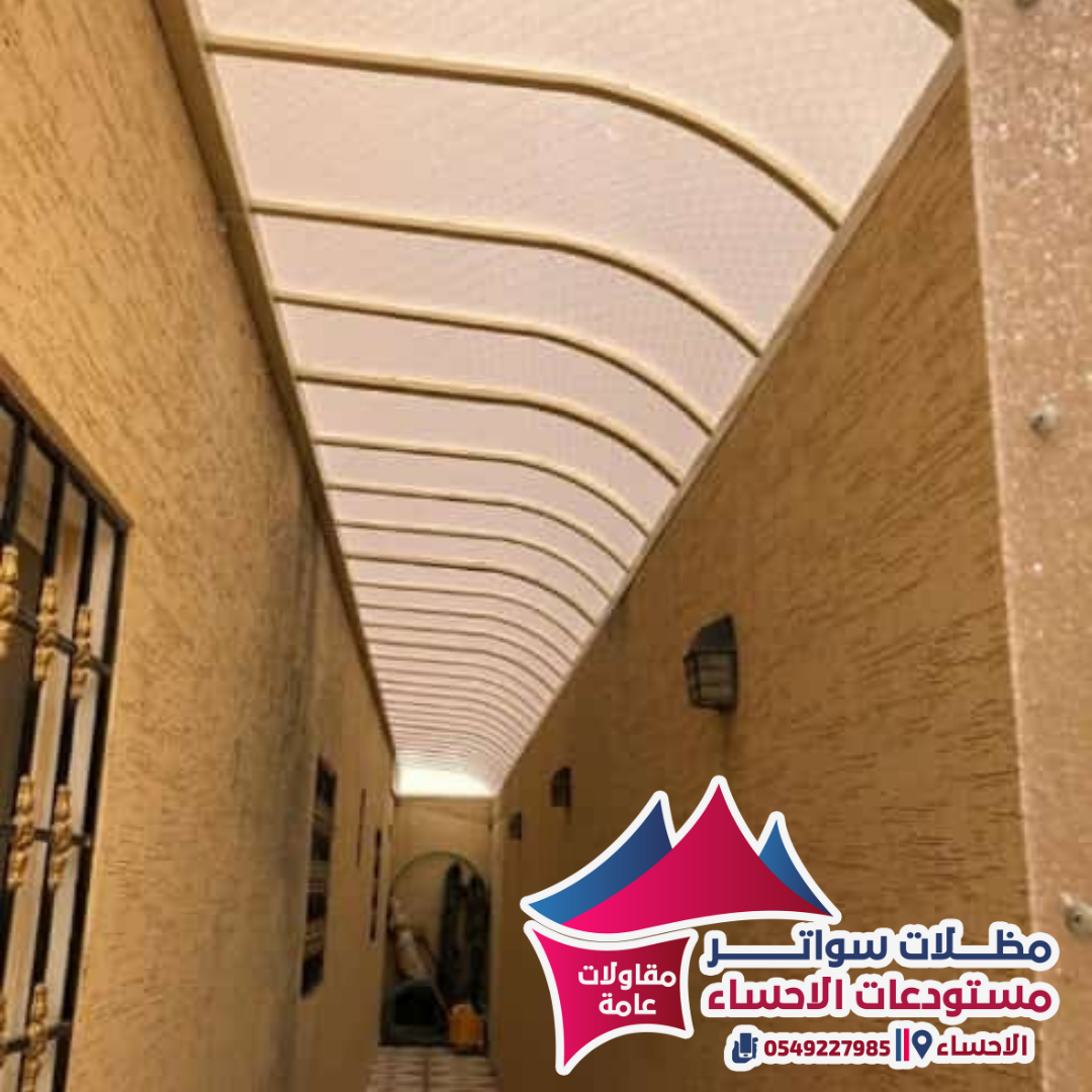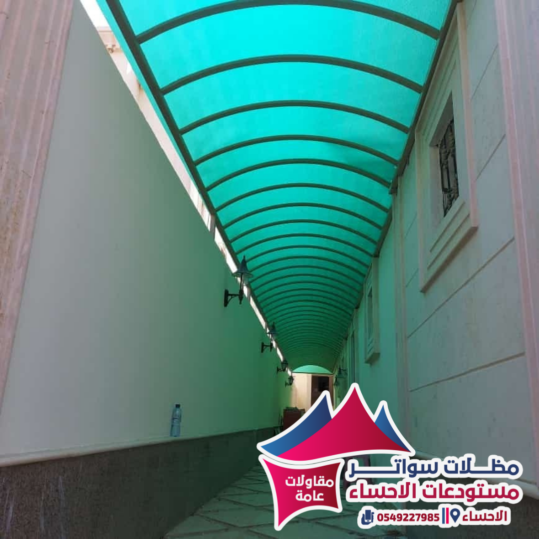 تركيب وتغطية ممرات المنازل ومداخل الفلل في الاحساء ، مظلة مدخل المنزل او فوق الباب من القماش واللكسان افضل اسعار مظلات و بخامات وتصاميم متنوعة تناسب الديكورات والأماكن التي توضع بها ونمتلك نخبة من أمهر الكوادر البشرية من العمال والفنيين التي تقوم بمهام التركيب على أكمل وجه، وتتميز مؤسستنا بتوفير كافة خامات وأشكال المظلات والسواتر وبأسعار مناسبة للجميع مع وجود ضمان لا يقل عن 10 سنوات ضد عيوب الصناعة والتركيب.