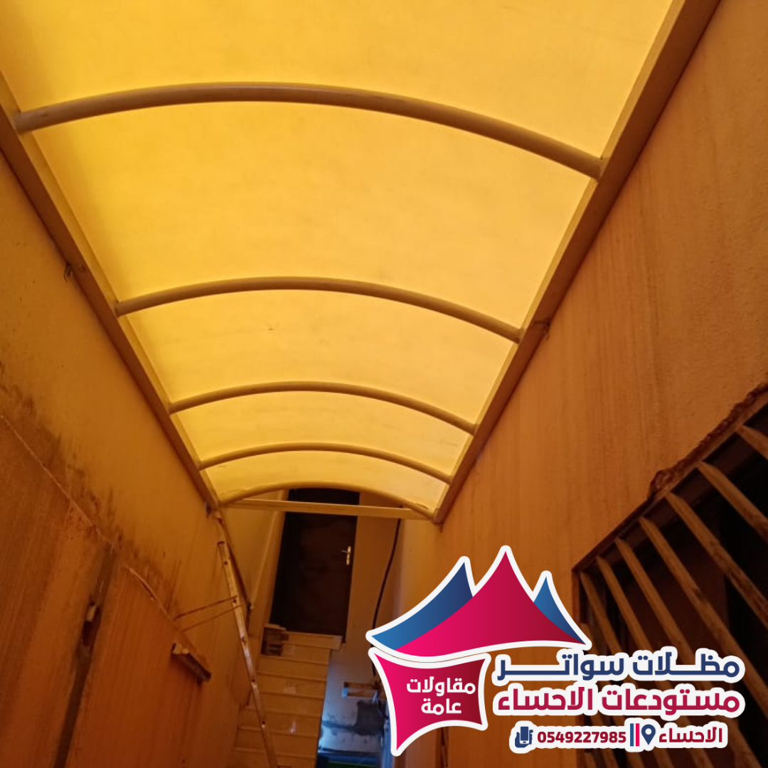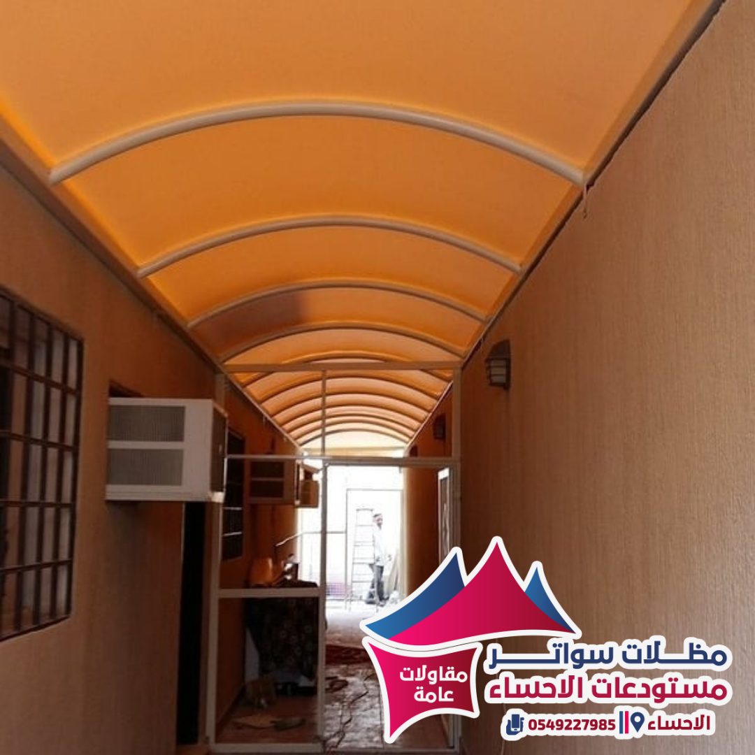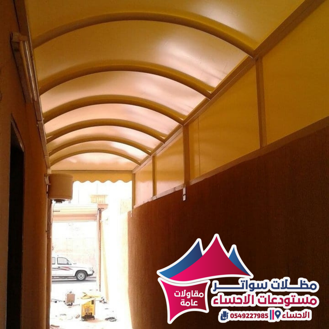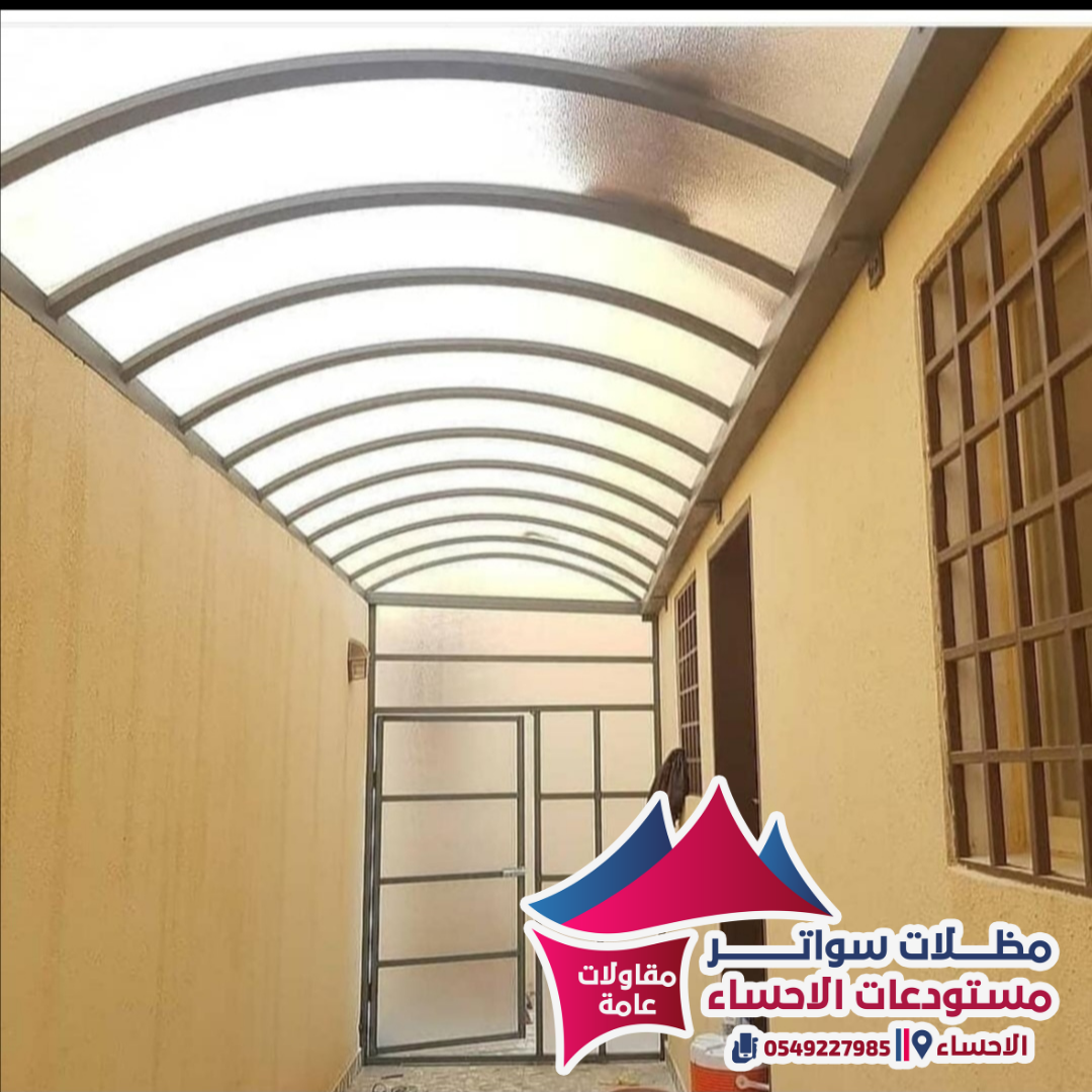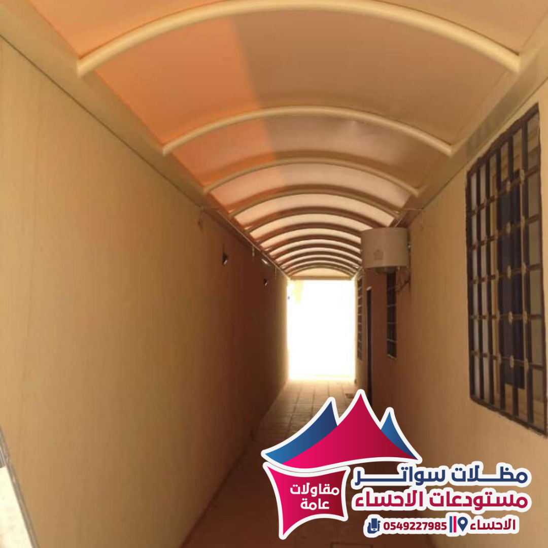 تركيب وتغطية ممرات المنازل ومداخل الفلل في الاحساء ، مظلة مدخل المنزل او فوق الباب من القماش واللكسان افضل اسعار مظلات و بخامات وتصاميم متنوعة تناسب الديكورات والأماكن التي توضع بها ونمتلك نخبة من أمهر الكوادر البشرية من العمال والفنيين التي تقوم بمهام التركيب على أكمل وجه، وتتميز مؤسستنا بتوفير كافة خامات وأشكال المظلات والسواتر وبأسعار مناسبة للجميع مع وجود ضمان لا يقل عن 10 سنوات ضد عيوب الصناعة والتركيب.